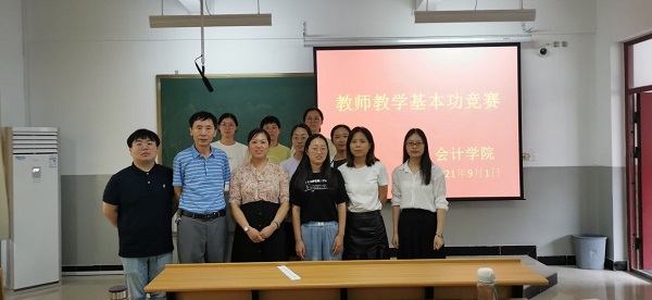金秋九月,丹桂飘香,在这充满收货的季节,会计学院为了加强年轻教师教学基本功的提升,9月1日下午在明理楼C303教室,积极组织年轻教师教学基本功竞赛交流活动,参加此次交流活动的有院长张传明,副院长胡晓平及会计学院全体老师。