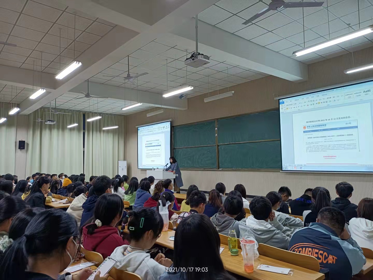 学涯浩如烟海,新生扬帆启航。为指导新生专业规划、明晰未来发展方向,2021年10月17日晚7点,学院于笃行楼A201教室举行新生专业教育讲座—“后疫情时代审计行业发展前景剖析”,讲座特邀中汇会计师事务所合伙人王露露女士作为主讲人给大家做了精彩分享,宋在科院长主持讲座,我院2021级全体新生参加讲座。
