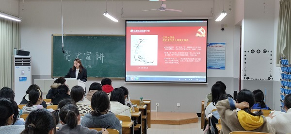 为加强当代大学生的时代使命和勇于担当精神,坚定社会主义理想信念,增强爱国主义情怀,弘扬“红色”文化精神。11月14日会计学院党史宣讲团第二小组开展了一次党史宣讲。