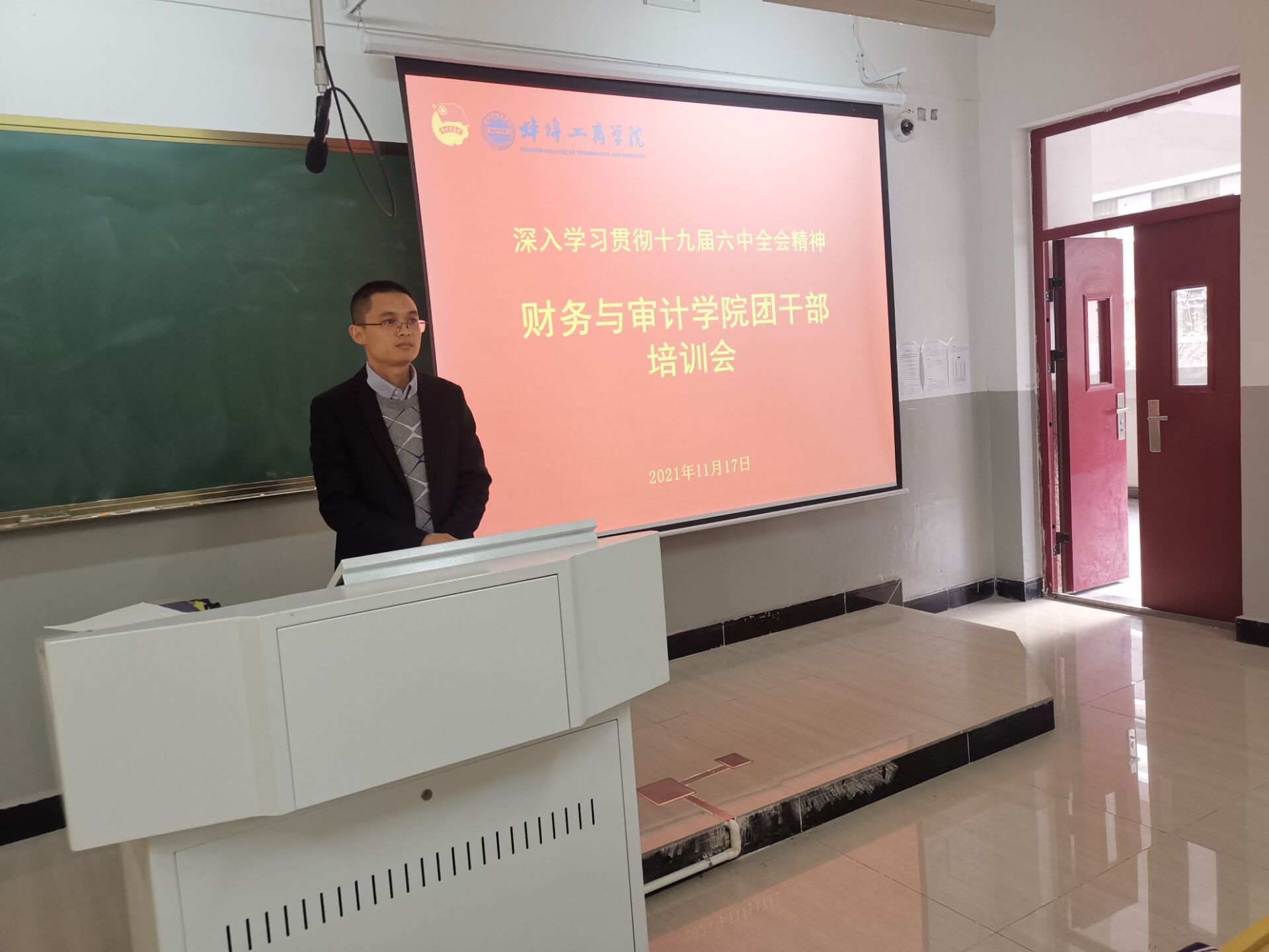 培训会由学院团委书记兼党总支秘书何程林主持,他强调党的十九届六中全会是在我们党成立一百周年的重要历史时刻,在全面建成小康社会、实现第一个百年奋斗目标、开启全面建设社会主义现代化国家新征程的重大历史节点召开的一次极为重要的会议,全会指出了中国共产党百年奋斗的历史意义,深刻总结了党领导人民进行伟大奋斗,积累的“十个坚持”的宝贵历史经验,对于更加坚定自觉的践行初心使命,团结带领全国各族人民夺取新时代中国特色社会主义新的伟大胜利,具有重大现实意义和深远历史意义。