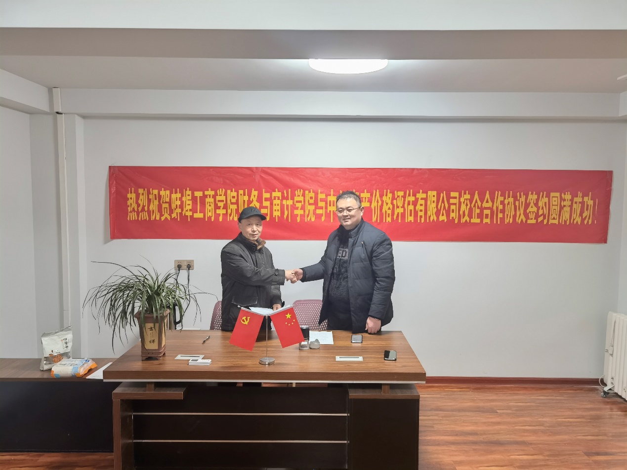 2022年1月7日,蚌埠工商学院财务与审计学院与中仁资产价格评估有限公司校企实习基地签约仪式顺利举行,财务与审计学院院长宋在科,副院长毛志忠,中仁资产价格评估有限公司总经理孙友才等一行出席仪式。仪式伊始,宋在科院长对孙总经理的热情接待表示感谢,并指出财务与审计学院在人才培养过程中一直十分重视校企合作,始终致力于通过搭建“引进来”与“走出去”相结合的实践模式,切实提高学生的应用能力,深化产学结合。本次校企战略合作与实习基地共建,对双方具有重要意义,一方面,可以为资产评估行业精准培养和输送人才,推动行业健康发展;另一方面,可以为学生提供实习实践平台,为高水平应用型人才培养提供有力支撑。签订实习基地合作协议只是第一步,期待在未来校企双方就更多领域展开深层次、全方位的合作。