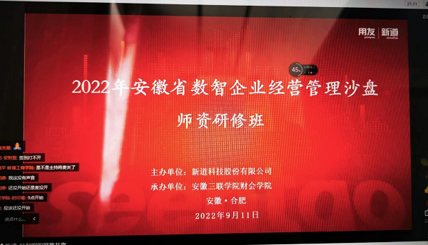 2022年9月11日,会计学院组织全体教师参加了2022年安徽省数智企业经营管理沙盘师资研修班培训。本次培训采用腾讯会议的形式开展,主要学习了S+Cloud数智企业经营管理沙盘软件的使用规则、操作流程、教师端后台操作流程和学生端实操步骤等内容。