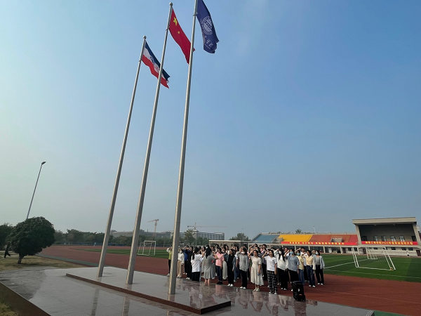 蔚蓝的天空下,伴随着《义勇军进行曲》,鲜艳的五星红旗冉冉升起。全体人员肃然而立,满含深情面向国旗行注目礼,以此表达对祖国最崇高的敬意和最美好的祝福。在国旗下,大家一同重温了入党誓词和入团誓词,面向鲜红的国旗,在领读人的领誓下,铿锵有力的誓词,一字一句,神圣而豪迈。宣誓是一种激励,一种鞭策,重温誓词就是重温当年的决心和信念,只有读懂这面特殊的五星红旗所承载的信仰的力量,才能更好的担负起时代的重任。