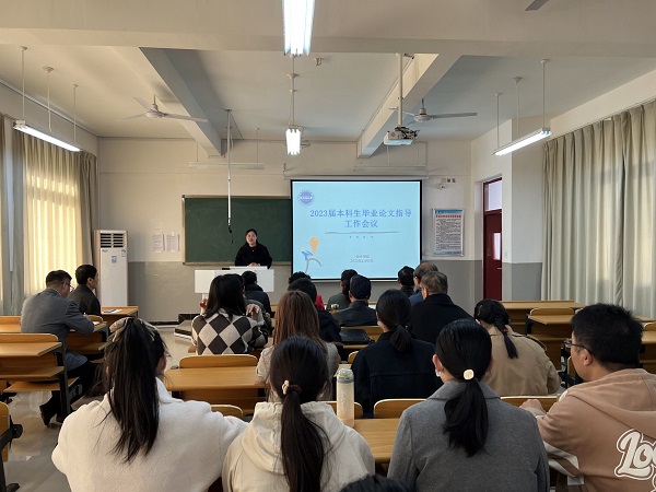 会议伊始,胡晓平副院长介绍了本次会议的议程。紧接着,由张传明院长宣布2023届毕业论文指导工作正式启动,并详细部署毕业论文工作安排。张院长重点围绕论文选题、开题报告撰写、中期检查、论文撰写、结构与格式、参考文献引用等方面进行了系统讲解。并对2023届毕业论文指导工作提出了一些建议:一、教师须与学生开展面对面动员指导会,与学生进行充分沟通,明确毕业论文的目的和重要性、如何选题、开题等一系列问题;二、指导教师必须以教务处发放的毕业论文文件及表格等为标准,严格督促学生认真写作;三、指导教师要帮助学生学会用使用数据库资源、网站资源找寻论文写作素材,多利用模型、图表、案例等形式充实论文内容,将论文写细写实,避免泛泛而谈。