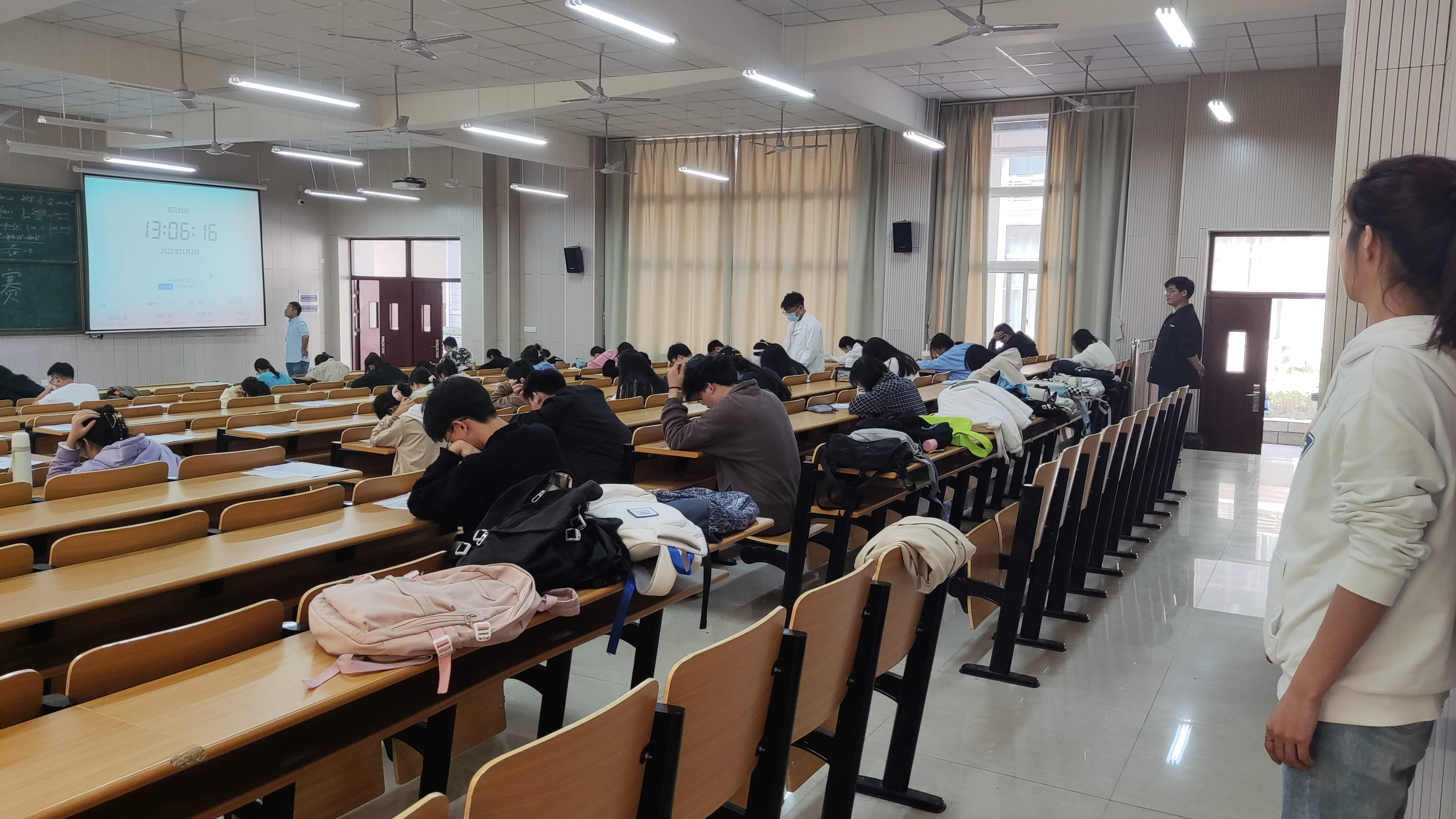 本次竞赛共吸引八十余名同学报名参加,校内选拔赛阶段参赛选手需要在规定时间内完成单选、多选和案例分析题目,比赛现场有五位监考人员,气氛严肃而紧张。