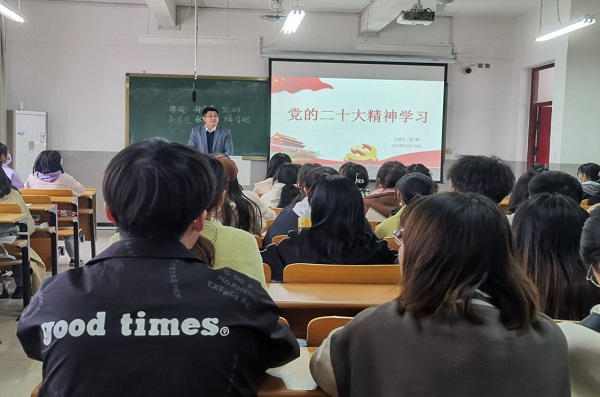 宣讲上,刘根围绕着党的二十大主题、二十大成果、新时代新征程中国共产党的使命任务等内容,通过自身掌握的理论知识,并结合自己的学习、实践和成长经历,为同学们深入解读党的二十大精神。刘根强调,希望全体党员认真学习贯彻党的二十大精神,牢记总书记的殷殷嘱托,努力成长为能吃苦、肯奋斗的新时代大学生。
