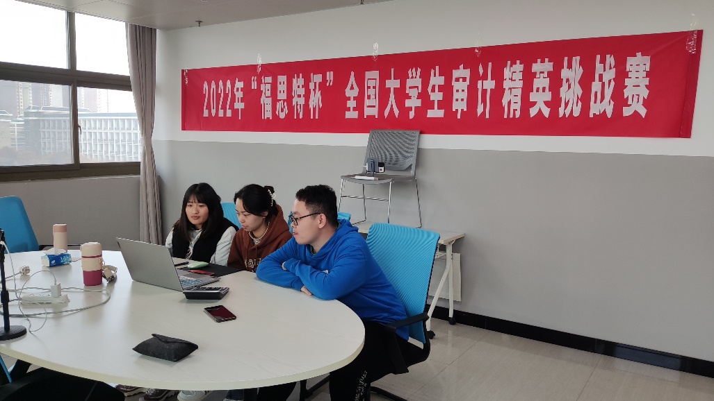 “福思特杯”全国大学生审计精英挑战赛至今已成功举办五届,是全国层次最高、规模最大的审计专业竞赛。大赛旨在创新高校人才培养模式,提高学生动手能力,培养适应社会发展需求的高素质审计人才。大赛内容涵盖注册会计师审计、内部审计和政府审计的知识,是目前国内考核范围最全的审计专业赛事。比赛题型由专业素养和审计实操两个部分,实操比拼采用虚拟仿真审计实验平台进行审计全流程,并融入了大数据审计技术,有助于开拓学生的专业视野,培养学生的跨领域知识融通能力和实践能力。比赛过程中,三位同学团结协作,沉着应对,充分发挥自己的长处,在审计综合知识、动手应用以及临场应变能力的全方面均展现出最好的状态,最终获得佳绩。