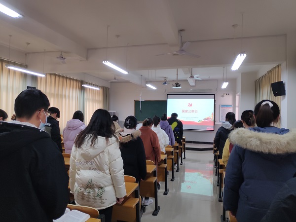 为铭记惨痛历史,激发爱国热忱,凝聚奋进力量,会计学院于12月13日组织学生党员代表在明理楼B302教室举行默哀仪式,缅怀所有惨遭日本侵略者屠杀的死难同胞和抗日战争胜利付出生命的革命先烈。