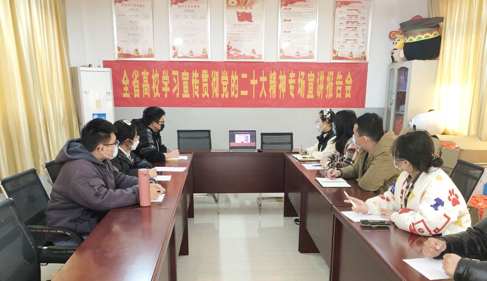 2022年12月13日下午15时,全省高校学习宣传贯彻党的二十大精神专场宣讲报告会在安徽财经大学主会场举行,省级师生巡讲团成员、省政协文化文史和学习委员会副主任、安徽师范大学博士生导师王先俊教授宣讲党的二十大精神。我院党总支组织全院师生通过集中收看和个人自主观看相结合方式聆听宣讲会。