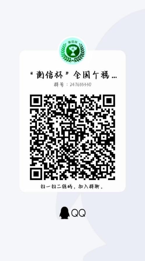 请有意向参加报名的同学加入QQ群:247655330(“衡信杯”全国个税师精英挑战赛校内赛群)进行咨询,相关信息将在群内通知。另外请进群的同学一定要备注姓名。