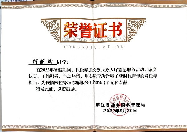 20会计1班郑睿暑假返乡后,不顾高温酷暑,积极响应号召,成为家乡疫情防控志愿者,协助社区开展常态化的疫情防控工作。在工作中,郑睿总是耐心地解答群众的问题,帮助社区工作人员维持秩序。在她看来,作为一名大学生,应积极反哺社会,为家乡贡献自己的一份力量。