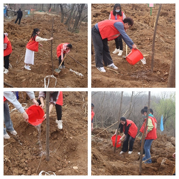挥锹铲土、压实填埋、扶树灌溉,栽下一颗颗树苗,种下一份份希望,志愿者们感受着春天的气息,为繁花似锦的春天增添了一抹新绿。