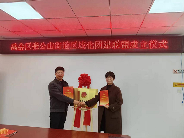 启动仪式在观看建团百年宣传视频《有我!》和青年学生代表诗朗诵《青春有我》中拉开帷幕。现场,张公山街道团工委与7家成员单位代表签订区域化团建联盟共建协议书,禹会区委副书记童浩平和张公山街道党工委书记陈瑛为区域化团建联盟进行揭牌。雷蕾部长代表团市委向禹会区张公山街道区域化团建联盟的正式成立表示热烈祝贺,她表示团区委要以此次区域化团建联盟的成立为抓手,让更多的青年人主动加入共青团,实现团的组织和工作全覆盖。