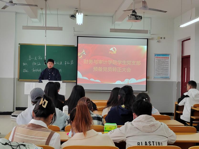 11月16日,财务与审计学院学生第二党支部召开预备党员转正会议。会议由支部书记屈晓龙同志主持。