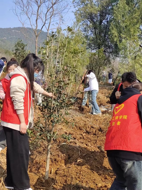 活动现场,志愿者们身穿红马甲,默契配合,认真负责,经过志愿者们的辛勤劳作,一排排嫩绿的树苗栽植在土壤中,志愿者们用自己的行动和汗水充分展现了青年的良好风貌与责任担当,此次植树节活动圆满完成,涂山风景区焕然一新。