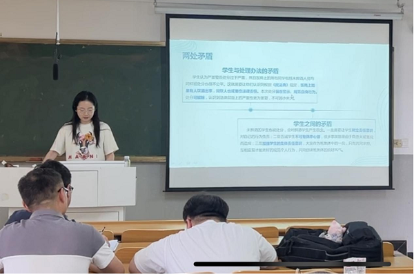 此次分享会中,赵艳楠老师以毕业季高校易发生的“学生醉酒事件”为例,向大家介绍了她的处理办法,如何正确解决矛盾以及日常预防校园危机事件的办法展开讲述。在此过程中,赵艳楠老师着重介绍了预防校园危机事件的具体措施,包括提高大学生自我保护意识、建立更强的责任意识以及集体荣誉意识,对自己的行为负责,也要对班集体负责,在共同承担与互相监督的激励下规范个人行为。