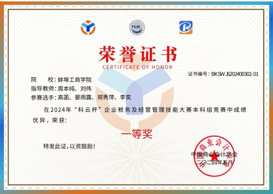 近日,由中国商业会计学会主办,湖南信息学院承办的2024年“科云杯”本科组企业税务及经营管理技能大赛成绩公示。吸引了来自全国300多所高校576支队伍参赛。我院2支代表队凭借卓越的表现,荣获国赛一等奖和二等奖,展现了我院学子在企业税务及经营管理领域的专业实力和竞技水平。