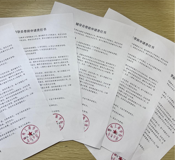 会后,会计学院还组织了新带班的辅导员签订《带班责任书》。这份责任书明确界定了辅导员的工作职责和责任范围,涵盖了思想政治教育、日常管理、学业指导、心理健康辅导等多个重要方面。新辅导员们郑重地在责任书上签下自己的名字,承诺将以高度的责任感和强烈的使命感,用心关爱每一位学生,为学生的成长成才奉献自己的全部力量。