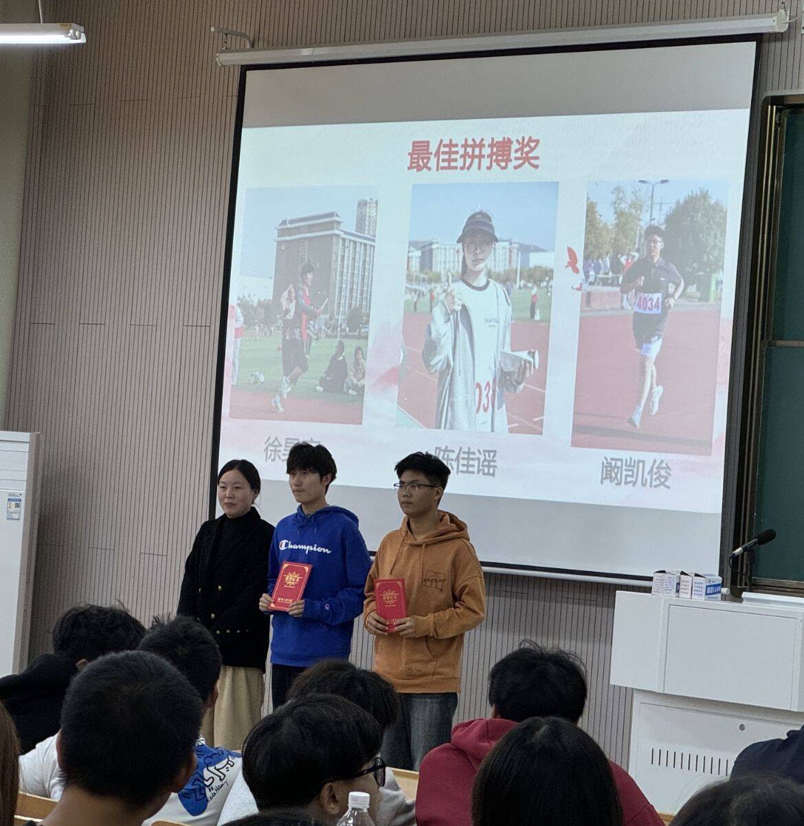 辅导员代表依次为获得最佳团队奖、最具贡献力奖、最具拼搏奖的个人和团队颁奖,优秀运动员代表做了交流发言。(文/舒晨 摄/舒晨 审核/孟北平)