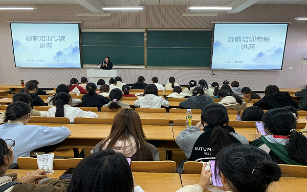 紧接着,校赛联系人高淑娟老师向在座的同学们详细讲解赛制赛情、参赛态度、关键时间节点、系统报名的具体操作方法与注意事项等重要内容。同时,高淑娟也鼓励同学们沉下心,不要急躁,秉承严谨的科学态度,做到有始有终。此外,高淑娟老师还特别提醒同学们要学会利用学校图书馆为大家提供的文献库、数据库、资源库。