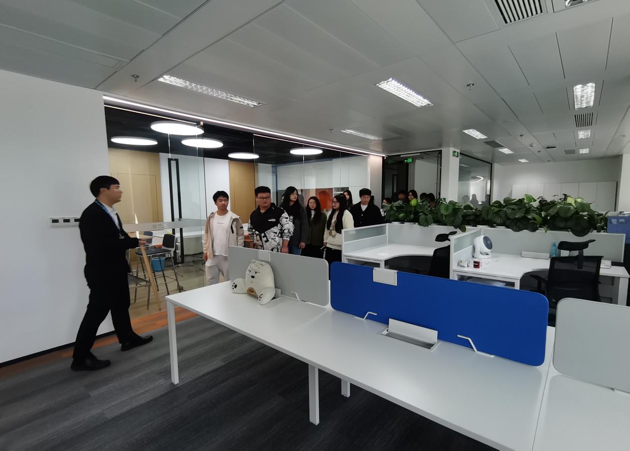 10日上午,学院师生一行首先参观了中汇会计师事务所江苏分所。活动开始,中汇会计师事务所人事行政经理王露露简明扼要地介绍了中汇的业务范围、行业地位及发展前景,并分享了企业招聘的底层逻辑与求职技巧。她特别指出,在职场中面临挑战和否定时,要保持求知、学习的心态,利用每一次反馈精进自己。紧接着王露露老师展示了以往学生的简历模板与面试表现,以此为例针对性地说明简历书写重点和分享面试形式与技巧,以及阐述了中汇会计事务所的岗位招聘要求和薪酬福利体系。她鼓励学生们在校期间要努力学习专业知识,积极考取相关证书,为将来的职业发展打下坚实的基础。在互动环节,学生们积极提问,王露露老师耐心解答,现场气氛热烈。随后,负责人带领学生们参观了办公环境,进一步了解了企业的文化氛围以及切身感受职场的工作环境。
