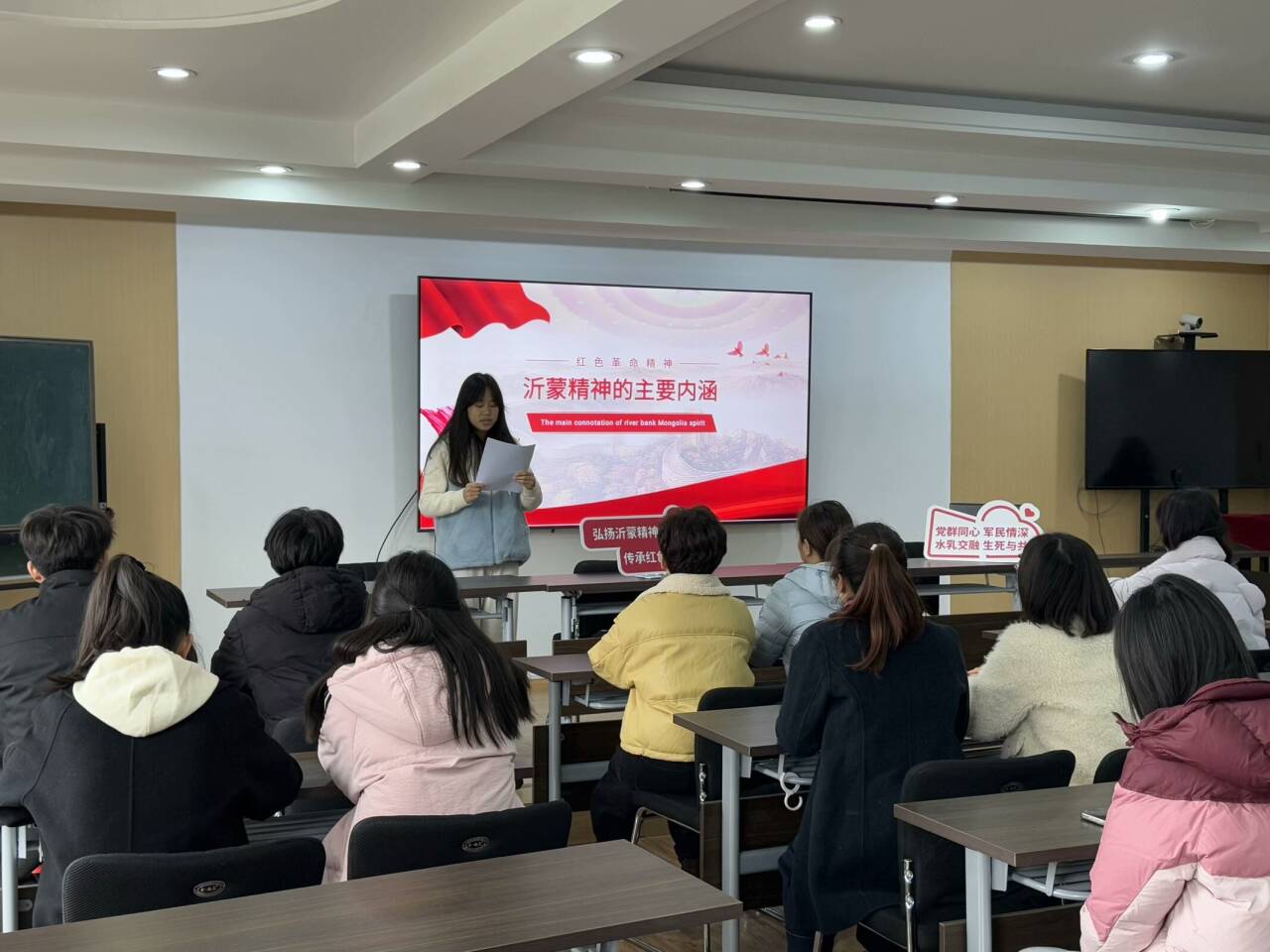宣讲团成员从沂蒙精神形成的历史条件、历史渊源、内涵和基本特征及时代价值等方面系统地介绍了沂蒙精神,阐述了沂蒙精神与新时代大学生的责任和担当的紧密联系。大家纷纷表示,通过参加宣讲活动,对沂蒙精神的丰富内涵有了更加深入的了解,在新时代的征程中,仍然需要继承和发扬沂蒙精神,让“沂蒙精神”成为指引人们勇往直前、不懈奋斗的强大精神灯塔。