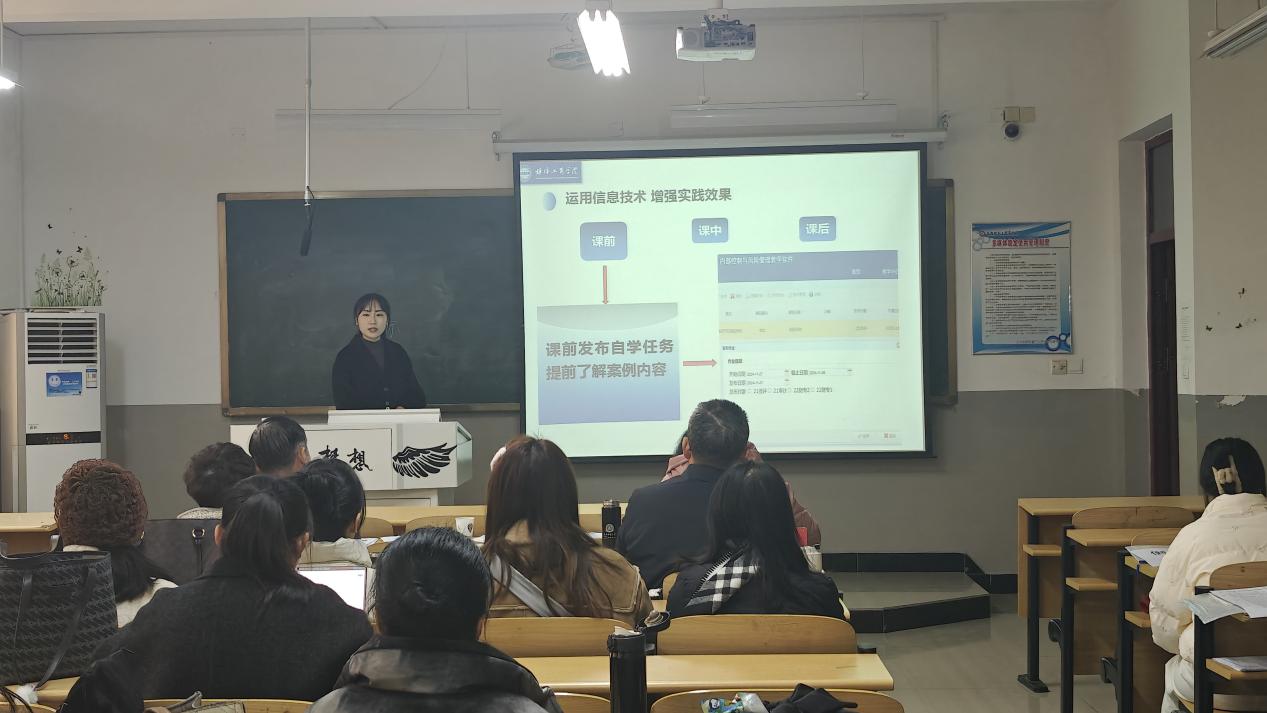 本次大赛包括教学设计创新汇报与教学展示两部分,每部分限时十分钟。这不仅是对教师们教学技能的考验,更是对他们教育理念和教学创新能力的挑战。在教学设计创新汇报环节,我院参赛教师围绕教学主题,分别从教学背景、创新特色、课程思政、成果辐射等多个维度,结合现代教育理念和技术手段,展示了独特的教学设计和创意。他们巧妙地将理论知识与实践相结合,注重培养学生的创新能力和综合素质,赢得了评委们的高度评价。在教学展示环节,我院教师更是大放异彩,充满激情与活力。她们运用生动有趣的教学方法和互动方式,将新工具、新理论、新模式巧妙地融入教学之中,将复杂的知识点变得通俗易懂,充分展示了教学魅力和专业素养。此次竞赛不仅是一次教学技能的较量,更是一次教育理念的交流与碰撞。