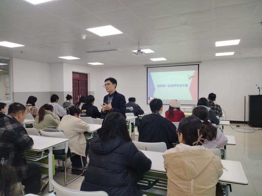 屈晓龙从学生干部综合素养提升角度入手,一是通过综测计算实例,对各类办公软件如何使用进行讲解,提高学生骨干办公实操能力;二是就如何开展各项学院活动进行细致指导,引导学生干部如何更高效地处理工作;三是要学以致用,鼓励大家在实践中不断进步、积累经验。