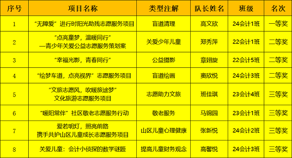 最终,经过层层筛选与严格评审,以下8个项目从30余项参赛作品中脱颖而出。这些项目不仅创意新颖、贴合实际需求,而且具有较强的可操作性和广泛的影响力,有望为志愿服务事业注入新的活力。