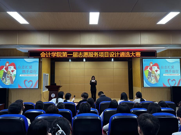 为大力弘扬志愿服务精神,着力培养学生创新公益理念,并通过遴选优质志愿服务项目,让志愿服务精神依托具体项目孵化落地生根,2025年4月28日,会计学院于格物楼B101成功举办了以“众志汇爱,携手益行”为主题的第一届志愿服务项目设计遴选大赛(决赛)。