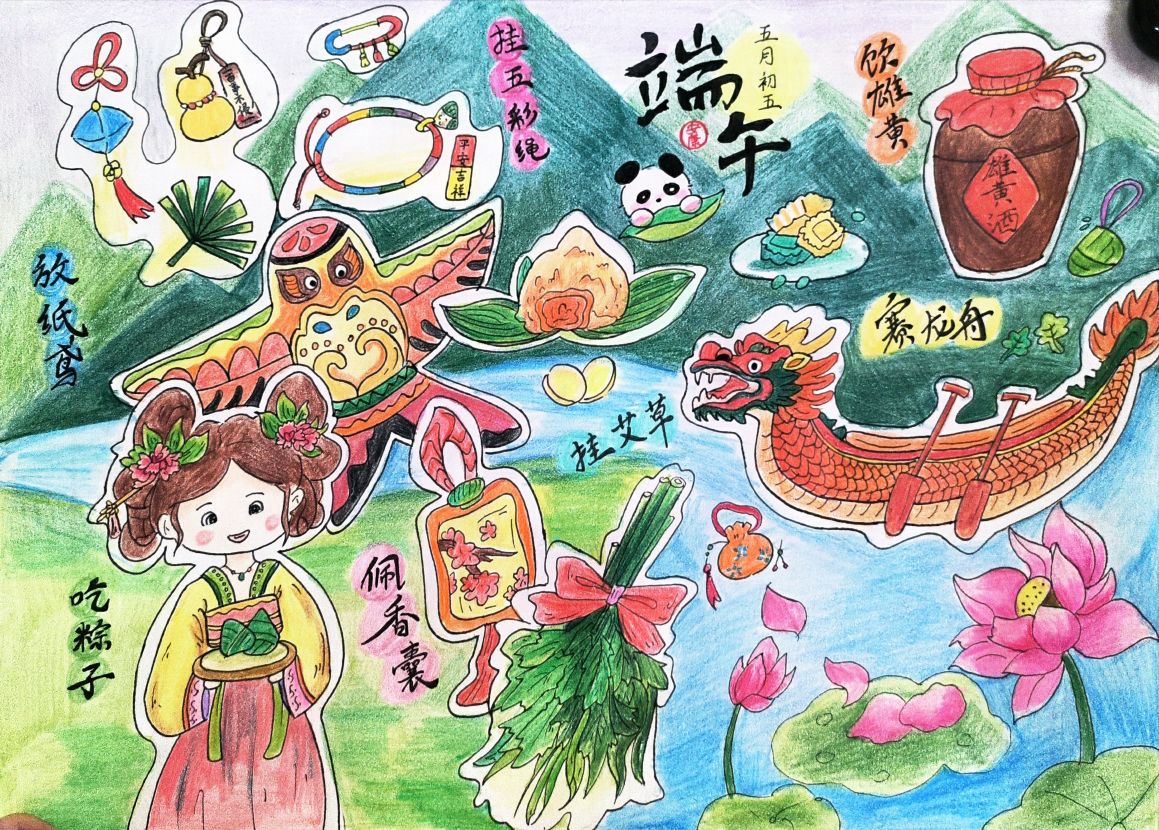 525日,财务与审计学院举办了"我眼中的端午"主题艺术作品创作大赛。本次活动以传统节日文化为载体,通过艺术创作形式展现端午文化内涵,吸引了全院各年级学生积极参与。参赛作品形式多样,涵盖传统水彩、素描以及现代数字绘画等艺术表现形式。参赛学生以独特的艺术视角,通过细腻的笔触生动再现了赛龙舟、包粽子、佩香囊等传统端午习俗,在方寸画布间展现了中华传统民俗的独特魅力。