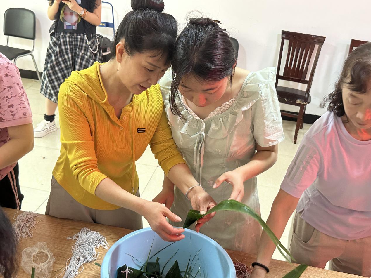 活动当天,在社区志愿者的指导下,同学们指尖翻飞编织五彩绳结,将平安祈愿编入其中;与社区志愿者围坐包制粽子,将团圆情谊裹入粽叶。粽叶包裹的是千年文明,彩绳缠绕的是文化使命,一个个粽子,成为了传递情感、弘扬劳动精神和传统文化的纽带,让端午佳节充满别样的温馨与意义。