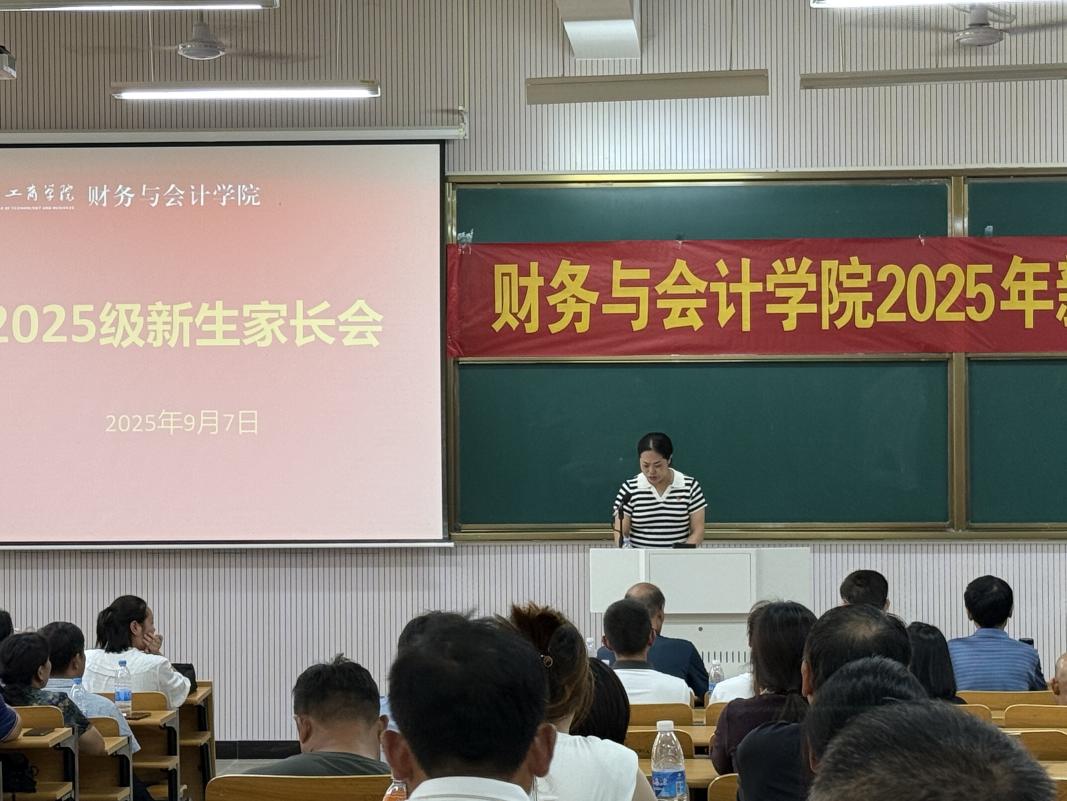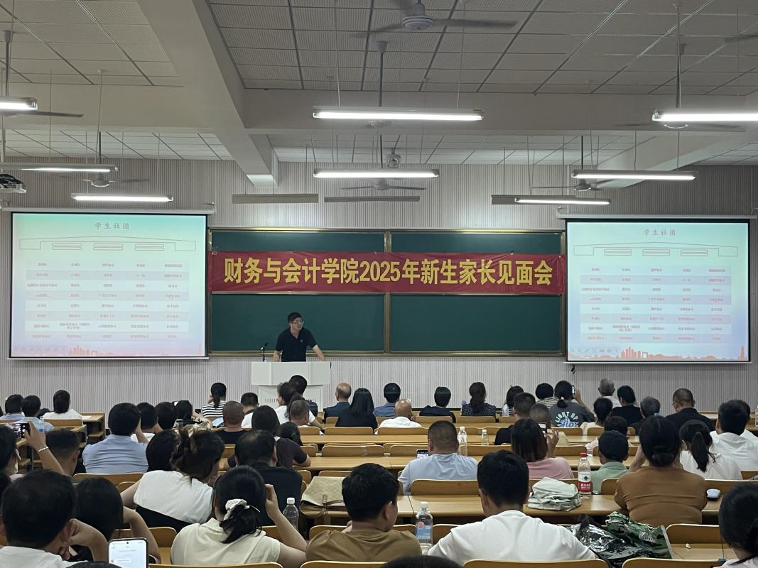 为加强家校沟通,凝聚育人合力,2025年9月7日下午,财务与会计学院于笃行楼A101报告厅成功举办2025级新生家长见面会。院长宋在科、党总支书记孟北平、副院长胡晓平、院长助理仇艳、团委书记高宇、各系主任及全体新生辅导员和新生家长参加会议,会议由副院长胡晓平主持。