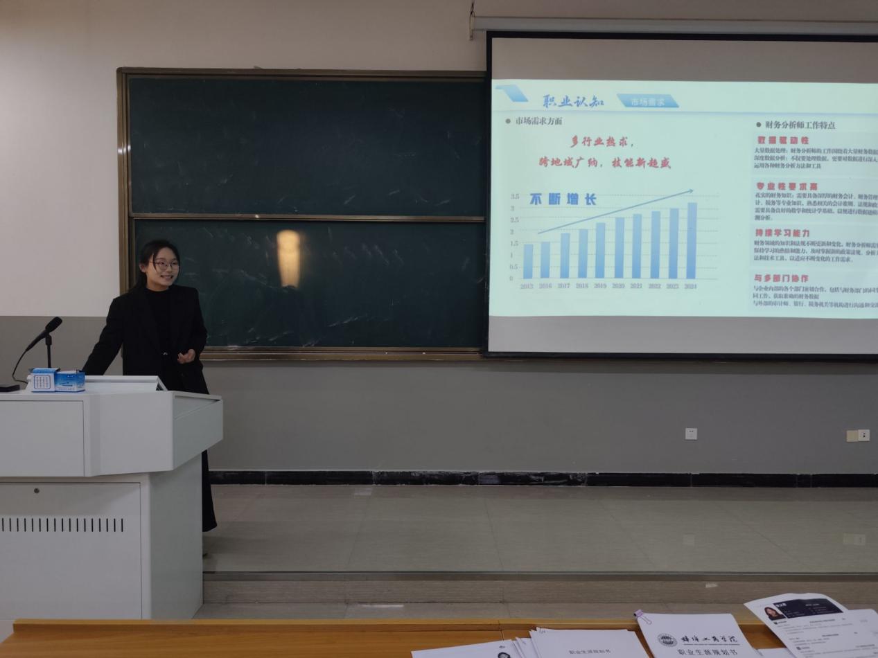 为落实教育育人目标,强化学生职业规划意识与就业核心竞争力,2025年11月19日下午14:30,财务与会计学院职业生涯规划大赛复赛在笃行楼C101顺利举办。经过初赛的严格遴选,16名优秀学子脱颖而出,分别在成长赛道与就业赛道展开精彩角逐,学院就业指导老师组成评审团全程保驾护航。