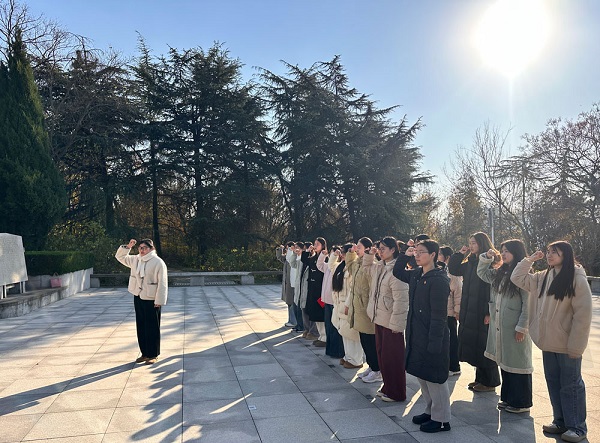 参观结束后,新党员们来到庄严肃穆的革命烈士纪念碑前,怀着无比崇敬的心情整齐肃立。在胡凤朗老师的领誓下,全体党员面向鲜红的党旗,郑重地举起右拳,庄严宣誓:“我志愿加入中国共产党,拥护党的纲领,遵守党的章程……”铿锵有力的誓言在纪念碑周边久久回荡,这不仅是对革命先烈们的深切缅怀,更是新党员们对党许下的庄严承诺,进一步坚定了他们不忘初心、牢记使命的坚定信念。