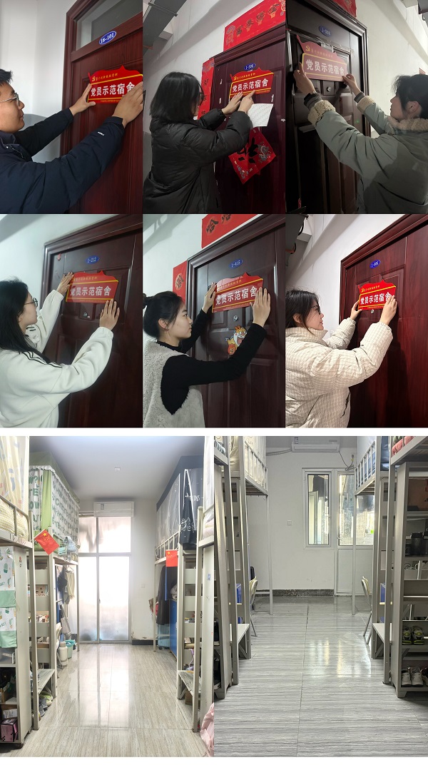 “党员示范宿舍”标准明确要求学生党员在宿舍门显著位置亮明身份、自觉接受广大师生监督,以思想引领作表率,将宿舍纳入党员发展考察范围;日常起居中恪守内务规范,保持床铺规整、物品有序、环境洁净,落实垃圾日清要求,严守安全用电底线,严禁使用违禁电器与违规接线;积极配合各类检查,以文明言行展现党员风采,时刻牢记自身身份,充分发挥先锋模范作用。这不仅仅是一个标牌,更是一面旗帜,代表着责任与担当。它时刻提醒党员严于律己、以身作则,在平凡日常中彰显先进本色,于细微之处践行初心使命,持续带动身边同学共同营造文明和谐、积极向上的校园生活氛围。