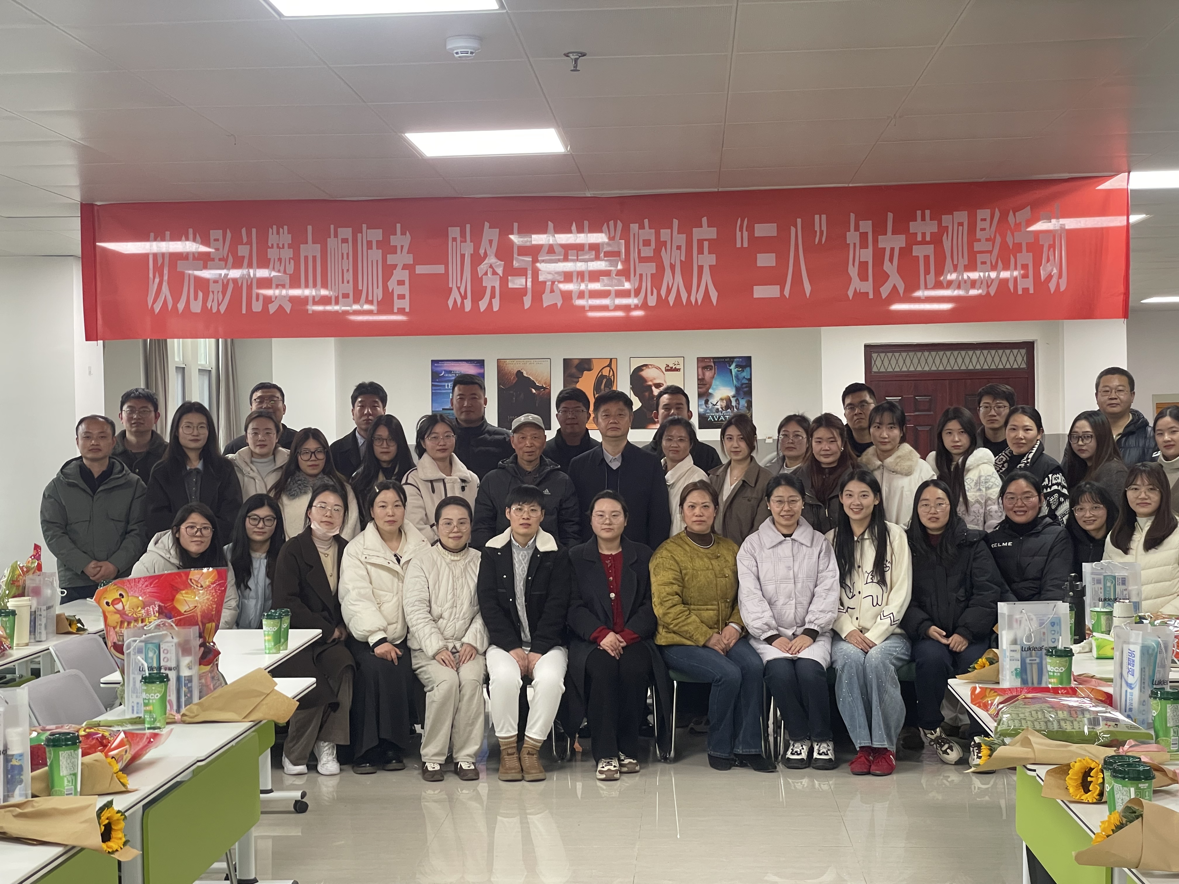 2026年3月8日,财务与会计学院于图书馆508隆重举办“致敬巾帼榜样,赓续教育初心”三八国际妇女节主题观影活动。学院全体教职工共同观看影片《我本是高山》,在光影中感悟张桂梅校长“我生来就是高山而非溪流”的信仰力量,接受一场深刻的精神洗礼。