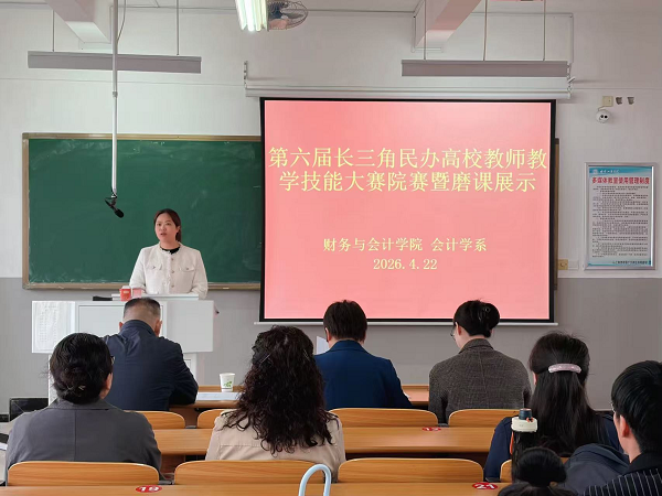 为深入贯彻学校本科教学工作合格评估精神,全面落实财务与会计学院“教师教学能力提升月”工作部署,会计学系于4月22日顺利举办第六届长三角民办高校教师教学技能大赛院级选拔赛暨磨课展示活动。本次活动以“以赛促教、以磨提质、以研促长”为宗旨,全系专任教师参与观摩研讨。